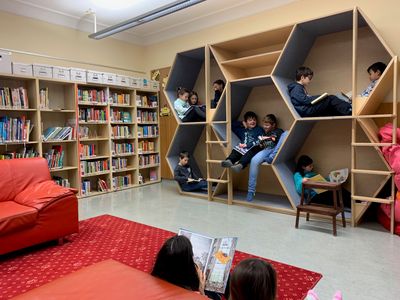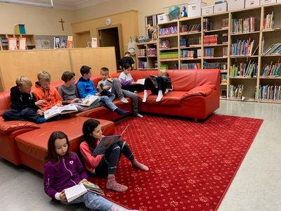 In der Schulbibliothek können die Kinder aus Zeitschriften, Erzähl- und Sachbüchern ihren Lesestoff wählen. Die Bücherei-Stunden kommen in den Klassen gut an! Unsere Schulbücherei ist im Haus 1 platziert. Kinder können sich in den Lesewaben zurückziehen und ihren Lesestoff genießen. Da macht Lesen richtig Spaß!