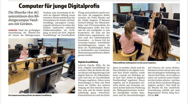 Die Illwerke AG bietet unseren Kindern, die am Freitag zur Mittagbetreuung gemeldet sind, ein warmes Mittagessen. Außerdem dürfen wir uns regelmäßig über Computerspenden bedanken.
