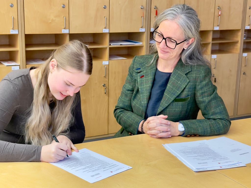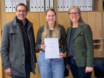 Frau Fachinspektorin Roswitha Schwaninger hat unsere Schule und im Besonderen Herrn Thomas Schuler besucht. Sie freute sich, ihm die Urkunde zur „Kirchlichen Unterrichtsbefähigung“ zu überreichen. Thomas Schuler hat den viersemestrigen Ausbildungslehrgang an der KPH Edith Stein absolviert und ist seit diesem Schuljahr im Unterrichtseinsatz. Herzliche Gratulation zum Ausbildungsabschluss.